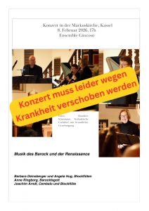 Leider musste das Konzert mit dem Ensemble Giocoso aufgrund einer Erkrankung verschoben werden.